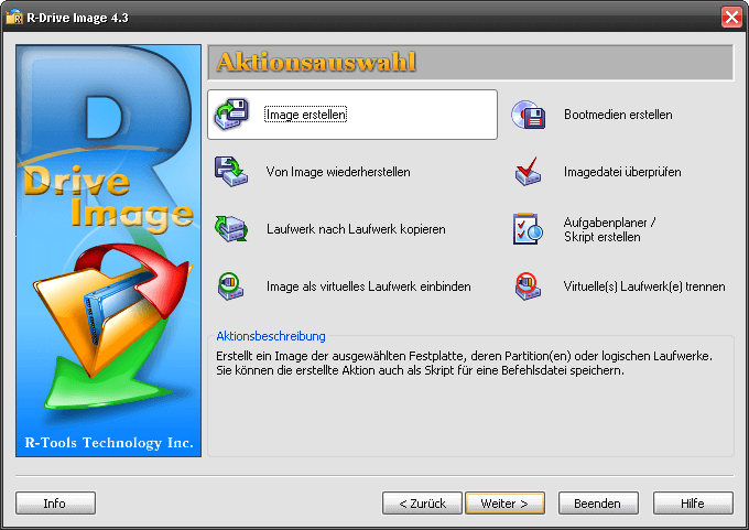R-Drive Image is a potent utility providing disk image files creation for backup or duplication purposes.